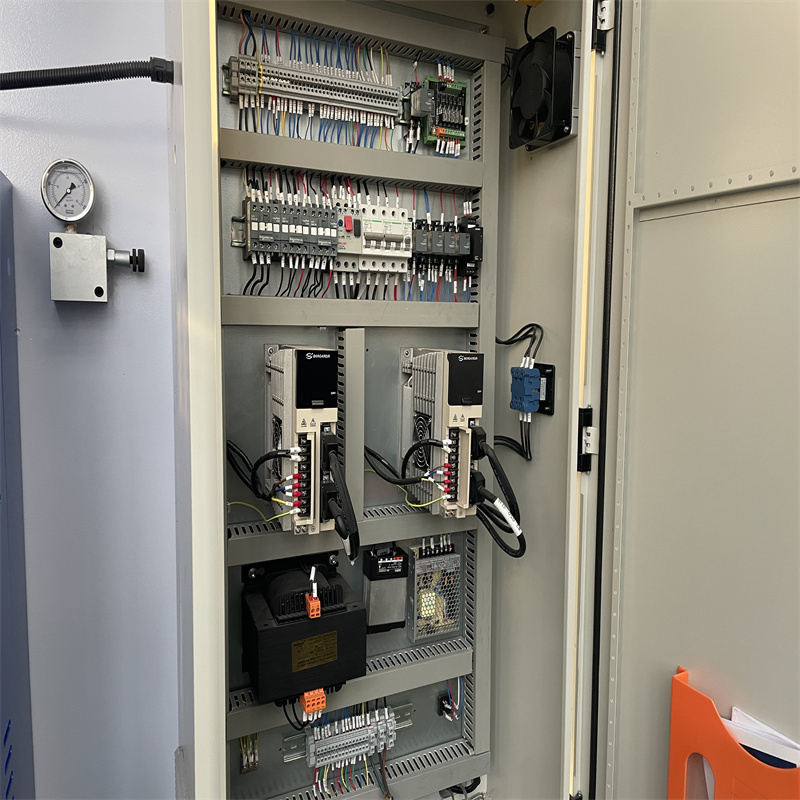 2. Đồng bộ hóa hoàn toàn các trục Y1 Y2 với hệ thống van thủy lực tỷ lệ và giám sát liên tục bằng hệ thống CNC với độ chính xác /-0.01mm